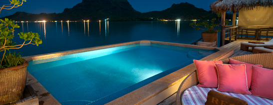 站在奥特马努山脚下放眼远望,波拉波拉瑞吉度假村被一片雪白皑皑的沙滩,碧波荡漾的礁湖以及郁郁葱葱的热带植被环绕着,占地178062平方米,拥有整个太平洋面积最大近百套豪华水上别墅和迷人的海宾别墅。